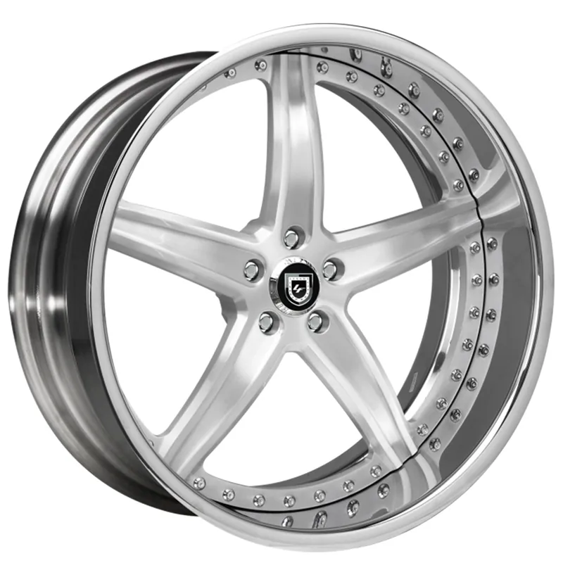26″ Lexani Forged Wheels LF-705 Brushed Silver Face with Chrome Lip Rims