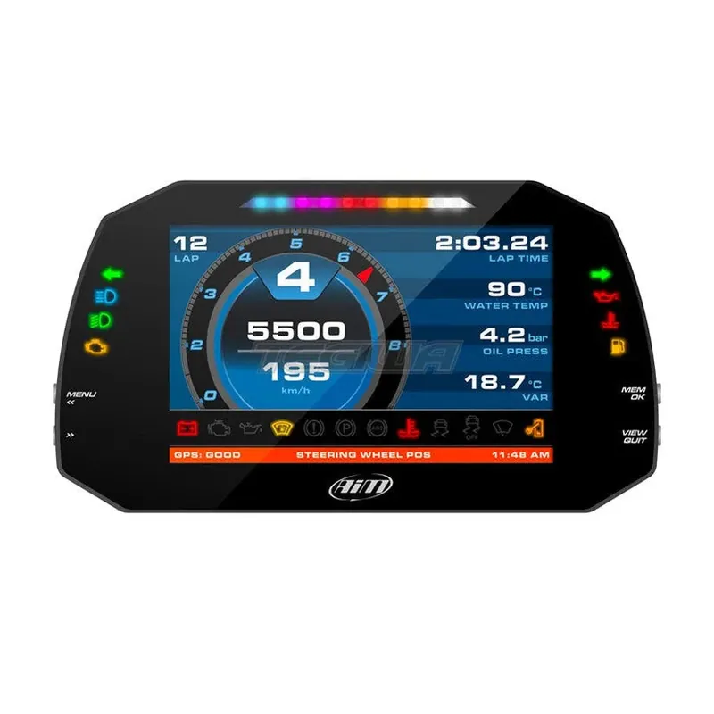 The AIM Motorsport MXG 1.3 Strada IVA Compliant Dash Kit (7” Colour TFT Display) is a universal dash display which has a 7″ wide colour display offering great visual impact, configurable to show all the info coming from the Engine Control Unit (ECU), analogue / digital inputs, pre-defined math channels and the optional