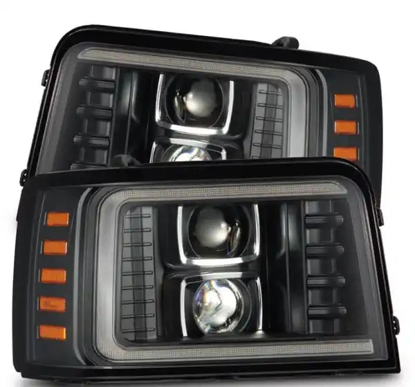 AlphaRex 92-96 Ford F-Series/Bronco LUXX-Series Proj Headlights Blk w/Actv Light SeqSig & SBDRL Mega Sale