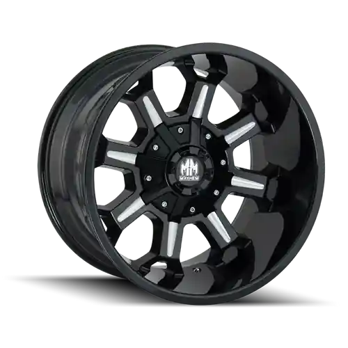 Authentic Mayhem 8105 Combat 20×9 / 5×150 BP / 18mm Offset / 110mm Hub Black w/ Milled Spokes Wheel