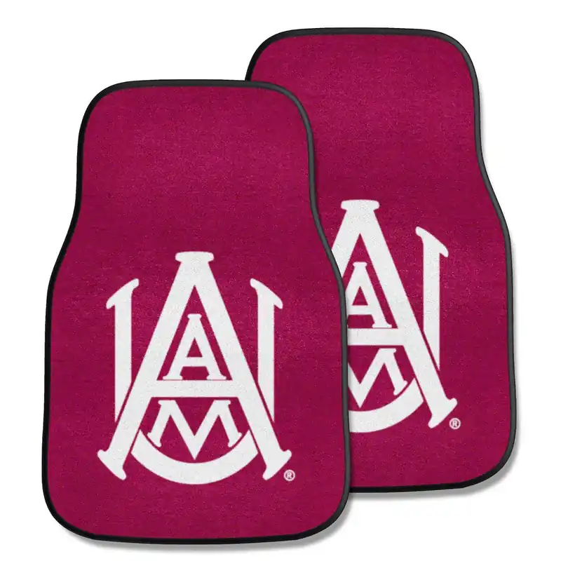 Carpet Front Floor Mats with Alabama Agricultural and Mechanical University Logo; Maroon Crafted