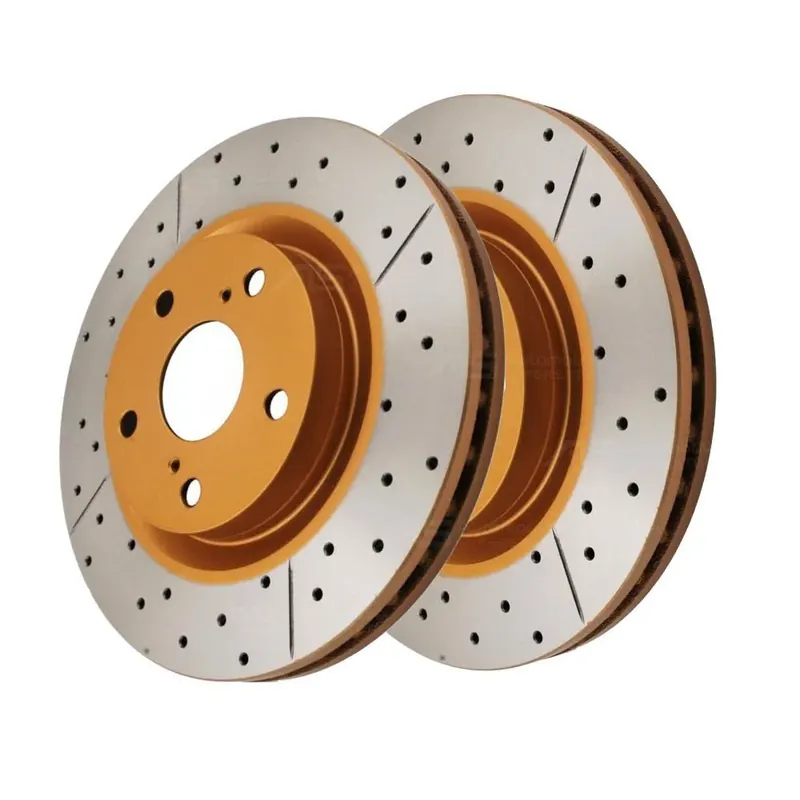 DBA rotors can be improved with the X-Gold design, a unique non-directional cross-drilled pattern that increases passive cooling, allows for gas-escape whilst maintaining excellent rigidity. The performance realised is similar to the T2 slotted range, however the aesthetics are further enhanced with all of the non-friction surfaces being coated in a unique gold paint.