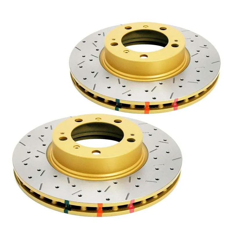 DBA 4000 Series rotors can be improved with the X-Gold XS design, a unique non-directional cross-drilled and slotted pattern that increases passive cooling, allows for gas-escape whilst maintaining excellent rigidity. The performance realised is similar to the T2 slotted range, however the aesthetics are further enhanced with all of the non-friction surfaces being coated in a unique gold paint.