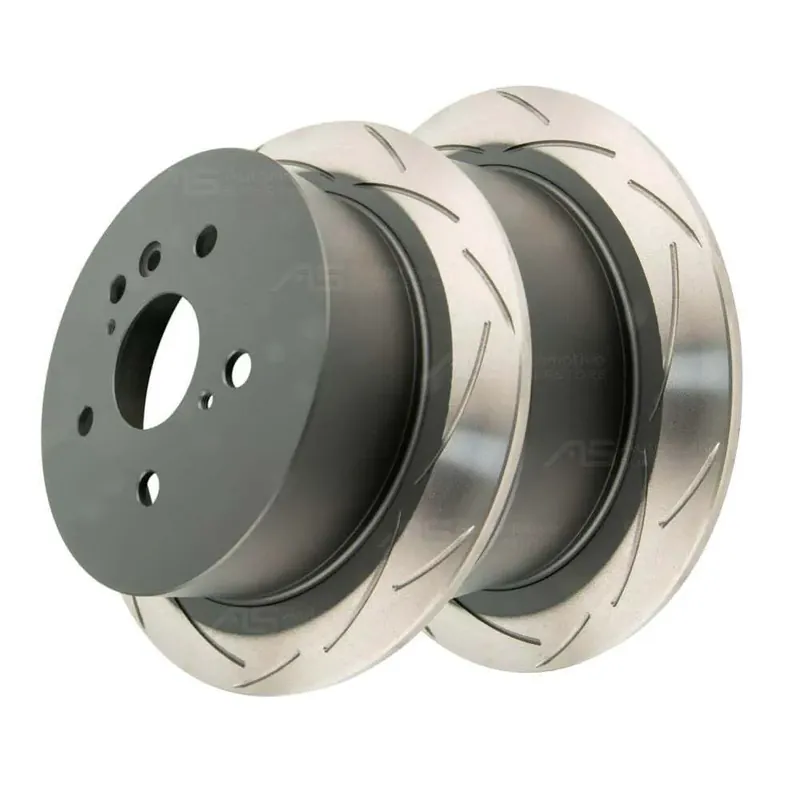 DBA’s Street Series rotors can be further enhanced with optional slots known as T2 – 32 CNC machined bi-directional curved slots. Machined slots in the friction surface allow a channel for braking by-products – brake dust and gasses from the incredible heat – to escape. This has a multitude of benefits, from reducing pad contamination, controlling heat build-up, and brake pad knock back. These combine to enhance braking performance and increase service life of the pads and rotors. Compared to more common straight slots, the unique curved slot design reduces the noise associated with ‘racing’ brakes, and minimises any detriment to pad surface condition.