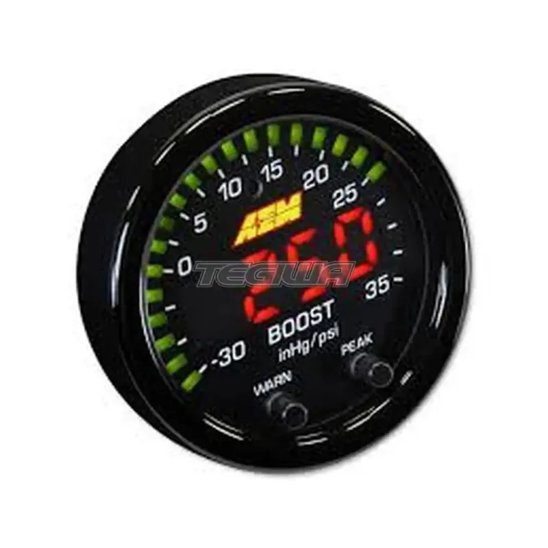 AEM X-Series Boost Pressure Gauge -30inHg~35psi / -1~2.5bar. Black Bezel & Black Faceplate AEM’s 30-0306 X-Series -30in/Hg~35PSI / -1~2.5BAR Digital Boost Display gauge combines incredible looks, increased readability and a multitude of new, easy-to-use features! It is a must for users who want highly accurate bo