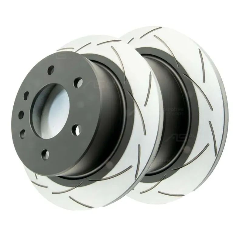 DBA’s Street Series rotors can be further enhanced with optional slots known as T2 – 32 CNC machined bi-directional curved slots. Machined slots in the friction surface allow a channel for braking by-products – brake dust and gasses from the incredible heat – to escape. This has a multitude of benefits, from reducing pad contamination, controlling heat build-up, and brake pad knock back. These combine to enhance braking performance and increase service life of the pads and rotors. Compared to more common straight slots, the unique curved slot design reduces the noise associated with ‘racing’ brakes, and minimises any detriment to pad surface condition.