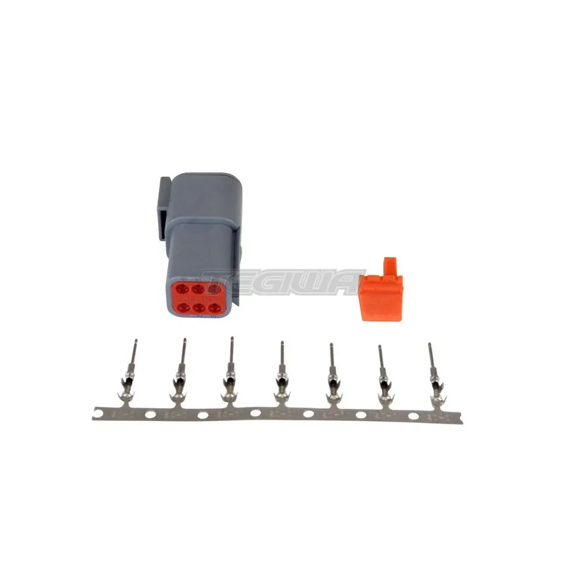 AEM DTM-Style 6-Way Receptacle Connector Kit. Includes Receptacle, Receptacle Wedge Lock & 7 Male Pins The High Performance DTM-Style plug & pin kits provided by AEM are high quality and affordable. These kits include High-quality sealed connector housings with weather seal, wedge locks and pins.