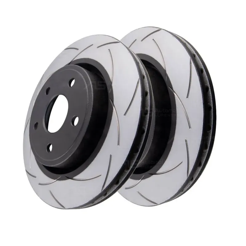DBA’s Street Series rotors can be further enhanced with optional slots known as T2 – 32 CNC machined bi-directional curved slots. Machined slots in the friction surface allow a channel for braking by-products – brake dust and gasses from the incredible heat – to escape. This has a multitude of benefits, from reducing pad contamination, controlling heat build-up, and brake pad knock back. These combine to enhance braking performance and increase service life of the pads and rotors. Compared to more common straight slots, the unique curved slot design reduces the noise associated with ‘racing’ brakes, and minimises any detriment to pad surface condition.
