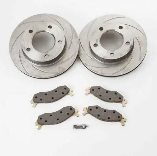 Turbo slotted rotors and high performance pads. For vehicles with 4 wheel ABS.