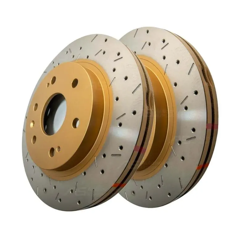 DBA 4000 Series rotors can be improved with the X-Gold XS design, a unique non-directional cross-drilled and slotted pattern that increases passive cooling, allows for gas-escape whilst maintaining excellent rigidity. The performance realised is similar to the T2 slotted range, however the aesthetics are further enhanced with all of the non-friction surfaces being coated in a unique gold paint.