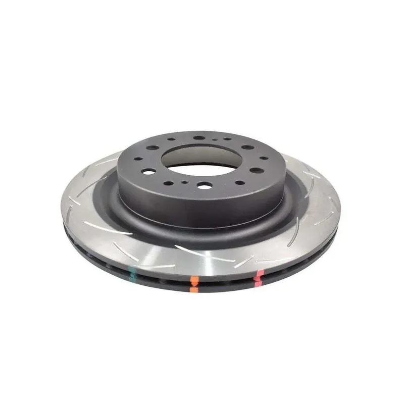 DBA’s 4000 Series and 5000 Series rotors can be further enhanced with optional slots known as T3 – 48 CNC machined tri-directional curved slots. Machined slots in the friction surface allow a channel for braking by-products – brake dust and gasses from the incredible heat – to escape. This has a multitude of benefits, from reducing pad contamination, controlling heat build-up, and brake pad knock back. These combine to enhance braking performance and increase service life of the pads and rotors. Compared to more common straight slots, the unique curved slot design reduces the noise associated with ‘racing’ brakes, and minimises any detriment to pad surface condition.